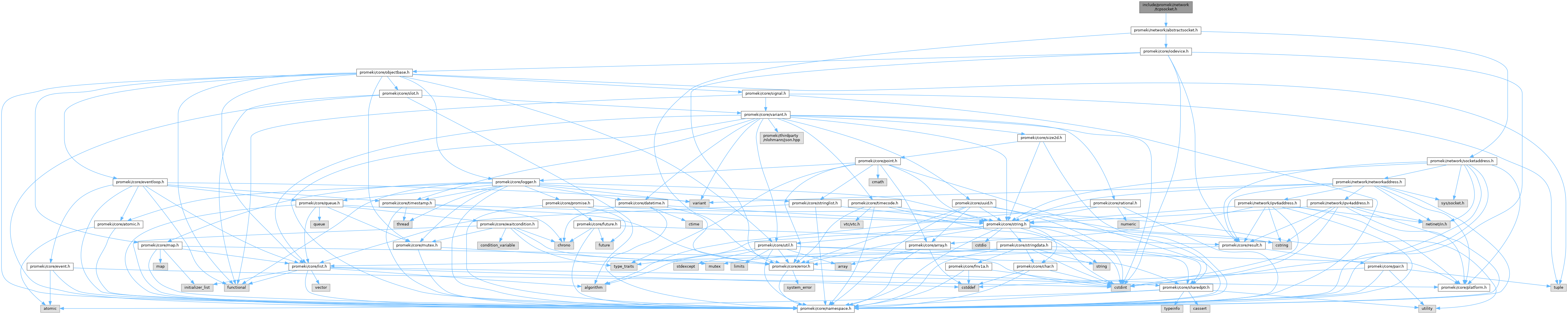 Include dependency graph for tcpsocket.h: